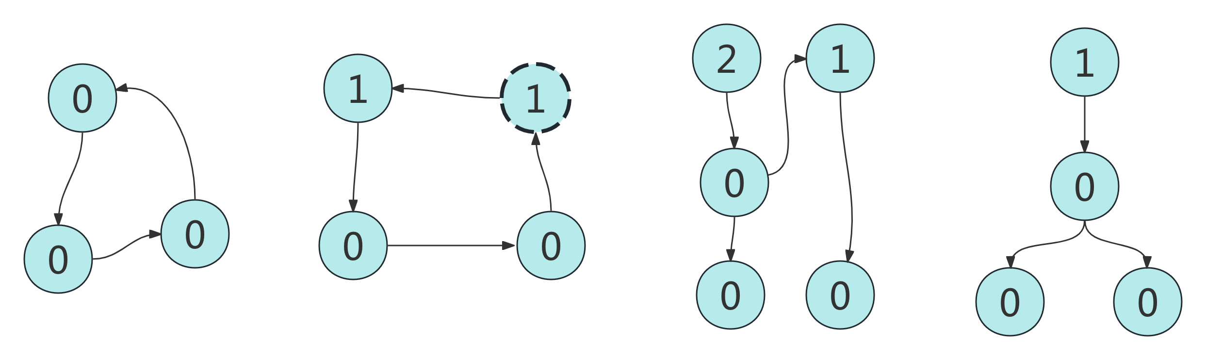 标记清除算法在 collect 函数中实现,它位于 Modules/gcmodule.c ,步骤并不复杂。为避免深陷源码细节,我们先抽出身来进行一次直观考察。假设待检测可收集对象链表中的对象引用关系如下: